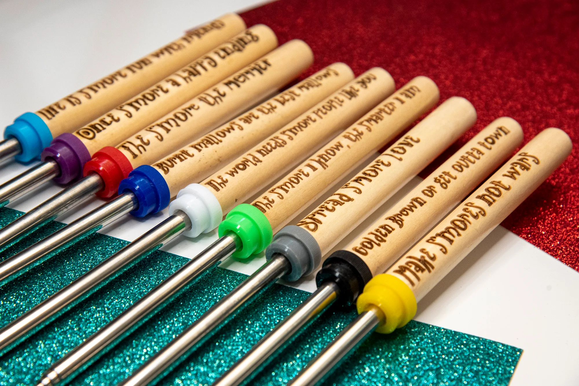 Assemble a set of laser-engraved s'mores sticks for the outdoorsy types in your life!