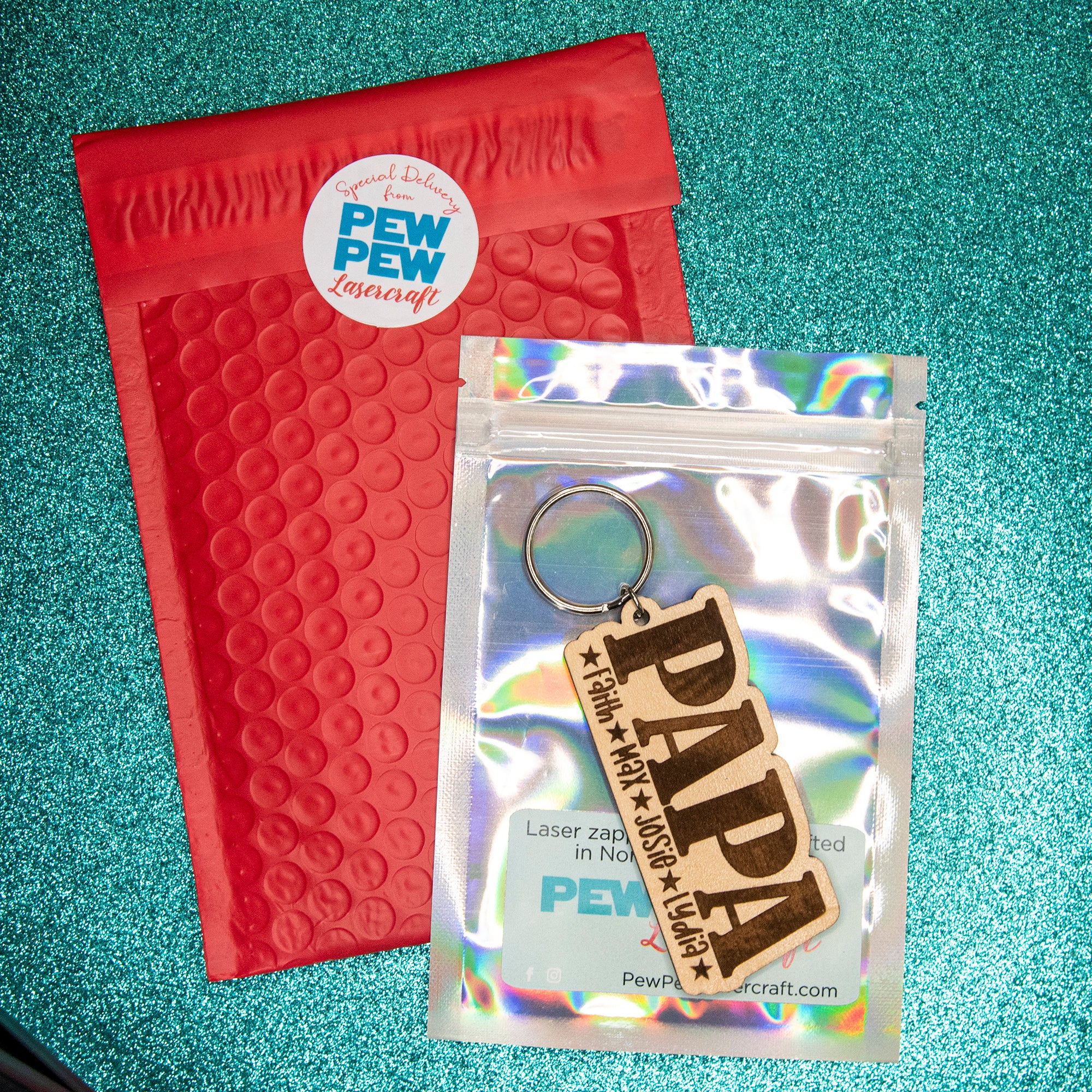 Let the world know how much you love your kids with this personalized, laser engraved keychain!